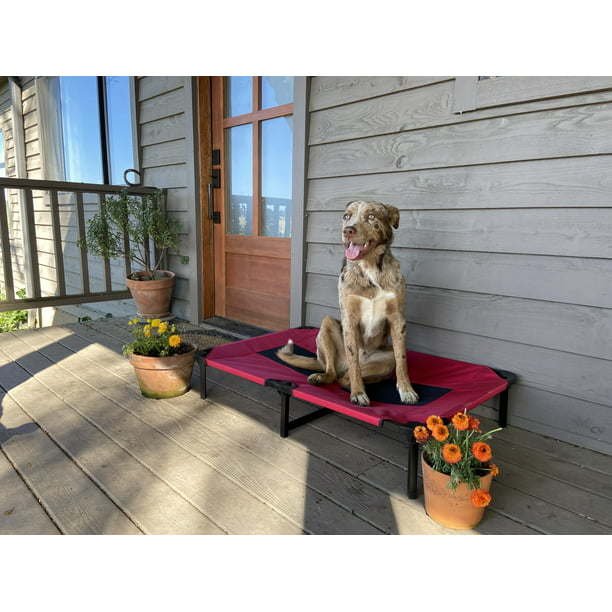 Sleeping on the floor has its charm, but eventually the big dogs of the world decide investing in a 'real bed' makes more sense. Graduate your furry best friend to the good life with an elevated dog bed made for sweet doggie dreams. In multiple kennel-compatible sizes, this puppy is built for strength, durability and comfort, inside and out. Powder-coated with environmentally-safe Drylac®, the tasteful, all-steel frame ensures sturdy suspension of your dog, evenly distributing weight for no sagging or stress points. Reinforced for the strongest seams, the cot top uses hefty, waterproof 1680 Denier ballistic polyester fabric that can stand up to intense clawing as they nest and lie down. It stays dry when they're wet or sleeping outside, and the soft, ventilated center mesh cushions and breathes to keep her cool in the hot months. This design also guards against paws getting caught in the corners. When things get dirty, just throw the top in the wash. Our dog products are made in state-of-the-art factory, a global industry pioneer in environmental responsibility that produces zero emissions and wastewater through its closed-loop recycling and reclamation processes.